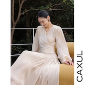 優雅なデザインが印象的なdrape ブラウス&スカート set up。品の良い光沢があり、しぼ感のある楊柳素材が作り出す柔らかな風合い。トップスはカシュクールデザインで、女性らしいシルエットを演出!スカートは斜めにデザインされたウエスト部分にギャザーを施し、しっかりとした生地が柔らかさを最大限に引き出します。スリット入りのデザインが、さりげなく魅力をプラスし、動きやすさも兼ね備えています。