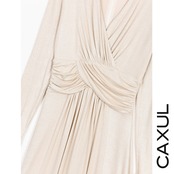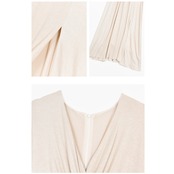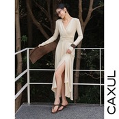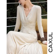 微光沢の“ルミナス”生地が美しく落ちる、カシュクール風Vネックのロングワンピース。ウエストに寄せたドレープが自然なシェイプを生み、バックはsimpleクリーンな仕上がり。深めスリットが軽やかさと女性らしさを添えます。さらりとした着心地で、デイリーから特別な日まで幅広く活躍。