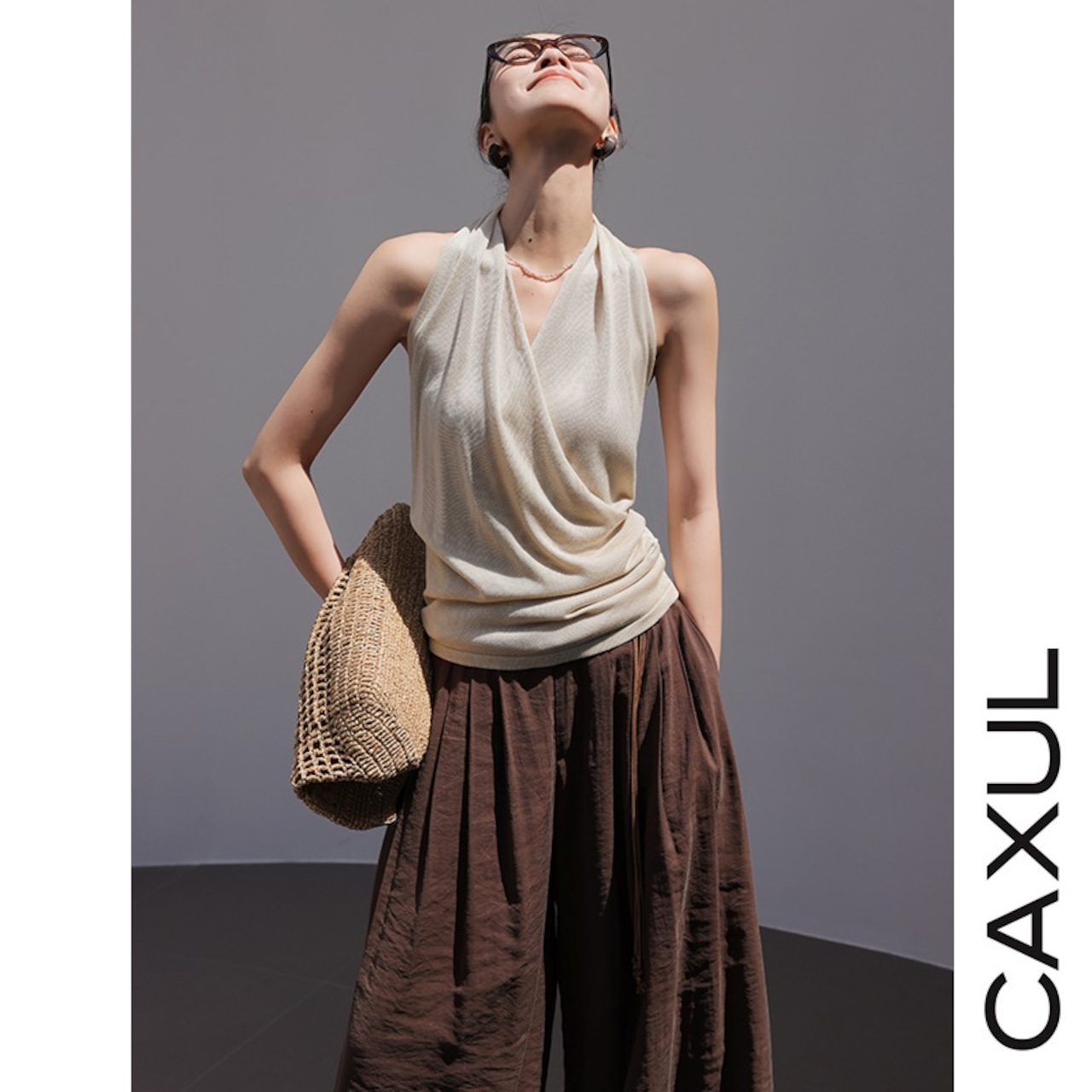 上質なテンセル100%素材のニットを使用したホルターネックトップス。自然な落ち感としなやかな肌触りが魅力で、着心地は軽やか。胸元に寄せたドレープがエレガントな印象を与え、リラックス感と女性らしさを兼ね備えています。デニムやワイドパンツ、スカートとも相性が良く、タウンからリゾートまで幅広く活躍する一枚です。