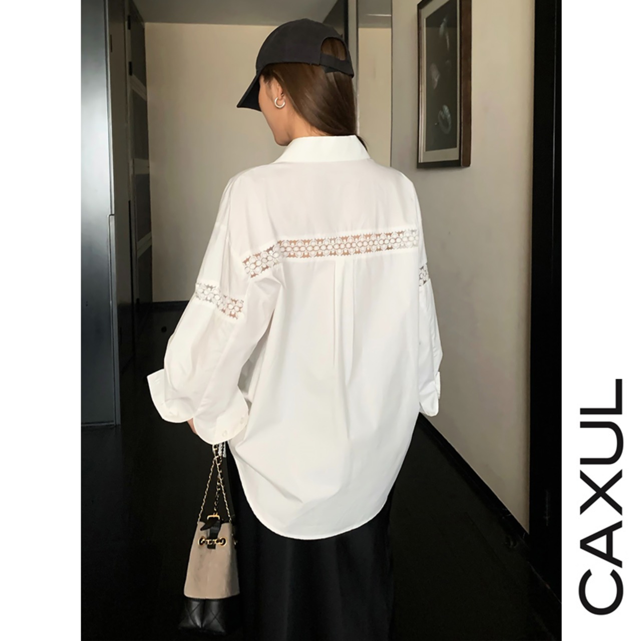 袖口と背面へあしらったレース切替が印象的なルーズフィットシルエットが魅力のシャツ。無地の単調さに変化を与え、フェミニンでロマンチックな雰囲気をプラスします。体型を選ばず着こなせ、気になる部分も自然にカバー。一枚でリラックス感あるスタイルに、スカートやパンツにインすれば洗練された印象へ。カジュアルにも上品にも着回せる万能な一着です。
