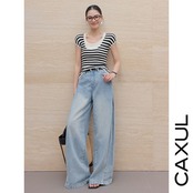ライトブルーストレッチ バギーdenimは、やや伸縮性のあるウォッシュドモップジーンズで、軽やかなlight blueのカラーが今の季節のスタイリングにぴったりです。腰回りをすっきりと見せるデザインに加え、腰横に施したタックから広がるシルエットが特徴で、きれいめコーデにおすすめです。