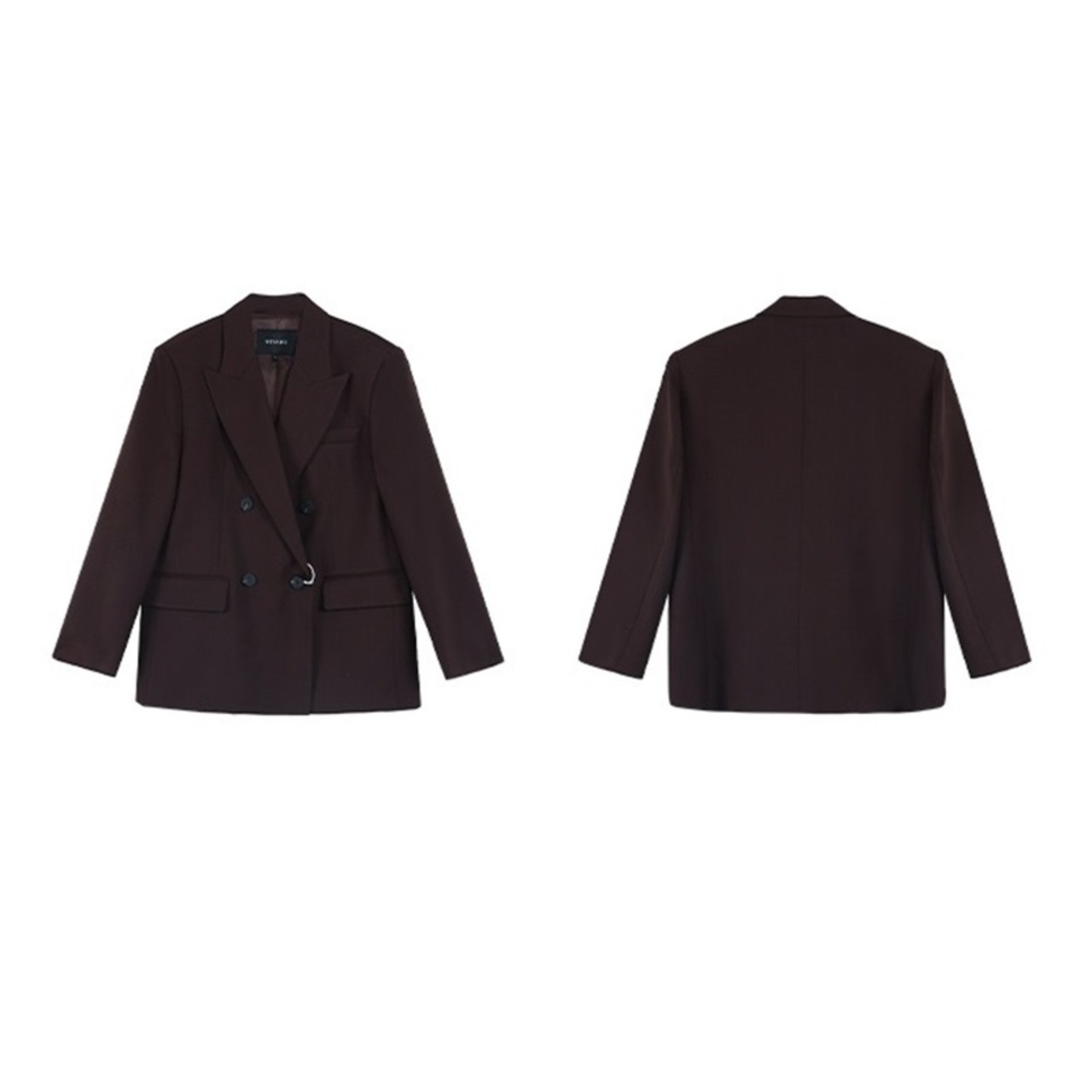 ボックスシルエットのゆったりしたdoubleブレストのジャケット。マニッシュで洗練された雰囲気を演出します。同素材のワイドフレアパンツとスーツで着れば脚長効果を叶え、女性らしい美しいシルエットに。スーツとしてはもちろん、デニム&Tシャツに合わせてカジュアルにも楽しめ、秋からのスタイリングに活躍する一着です。
