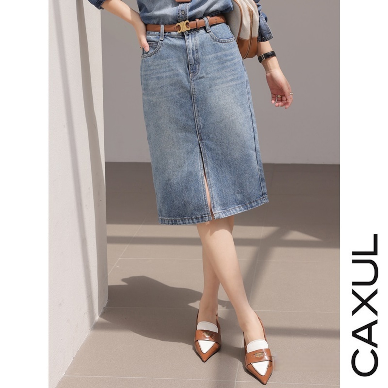 ウォッシュド加工による程よい色落ちがこなれ感を引き立てるデニムのセットアップ。ヴィンテージライクな質感が魅力で、上下セットでは洗練された印象に、単品でも幅広く着回せます。シャツはダブルポケットがアクセントとなり、すっきりとしたシルエットを演出。ニーレングスのタイトスカートはフロントスリットでモード感をプラスし、甘辛MIXコーデにも最適な一着です。