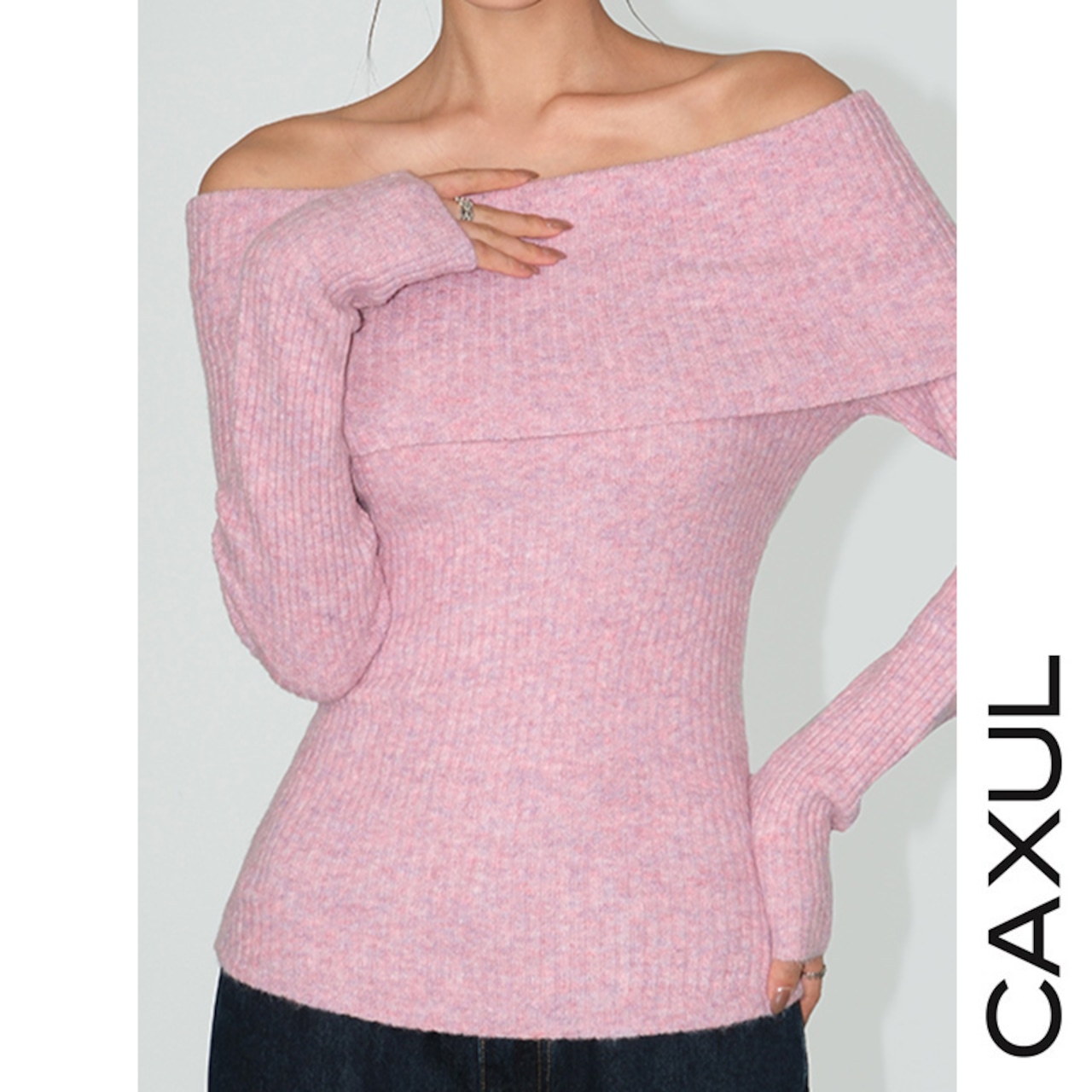 デコルテを美しく魅せるオフショルダーデザインが印象的なニットトップ。大きめの折り返し襟が生む抜け感と、リブニットがボディラインを引き立て、スリムなシルエットが女性らしさを際立たせます。もっちりしたニットが着心地良く、清楚で洗練された印象ながら、カジュアルにもモードにも着こなせる一枚です。