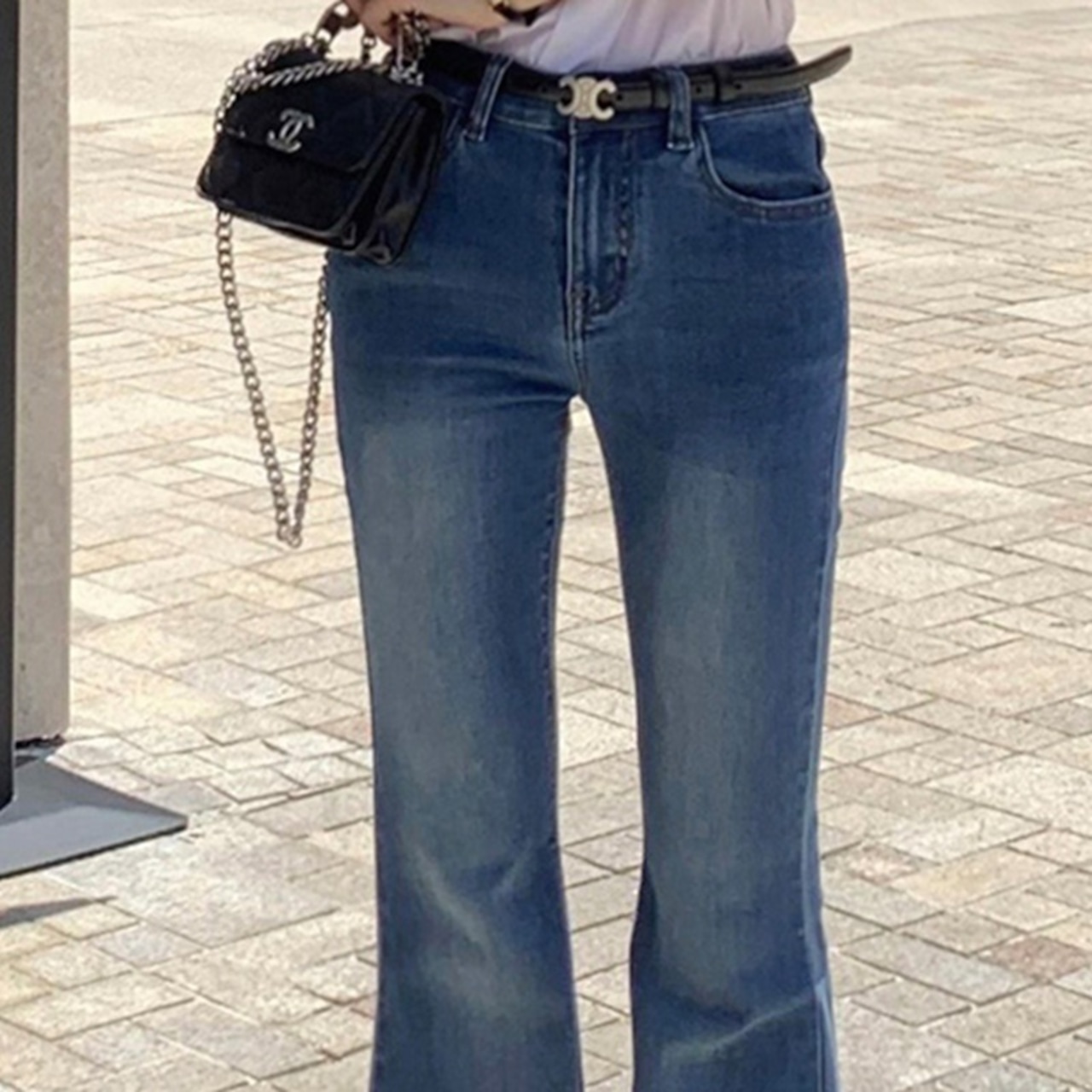 レトロムード漂うミドルローライズのフレアデニム。伸縮性のあるストレッチデニムが脚を美しく包み込み、自然なフィット感でスタイルアップを叶えます。切りっぱなしの裾とヴィンテージウォッシュがこなれた表情を演出。マイクロフレアのシルエットが脚のラインをすっきり見せる、注目の1本です。
