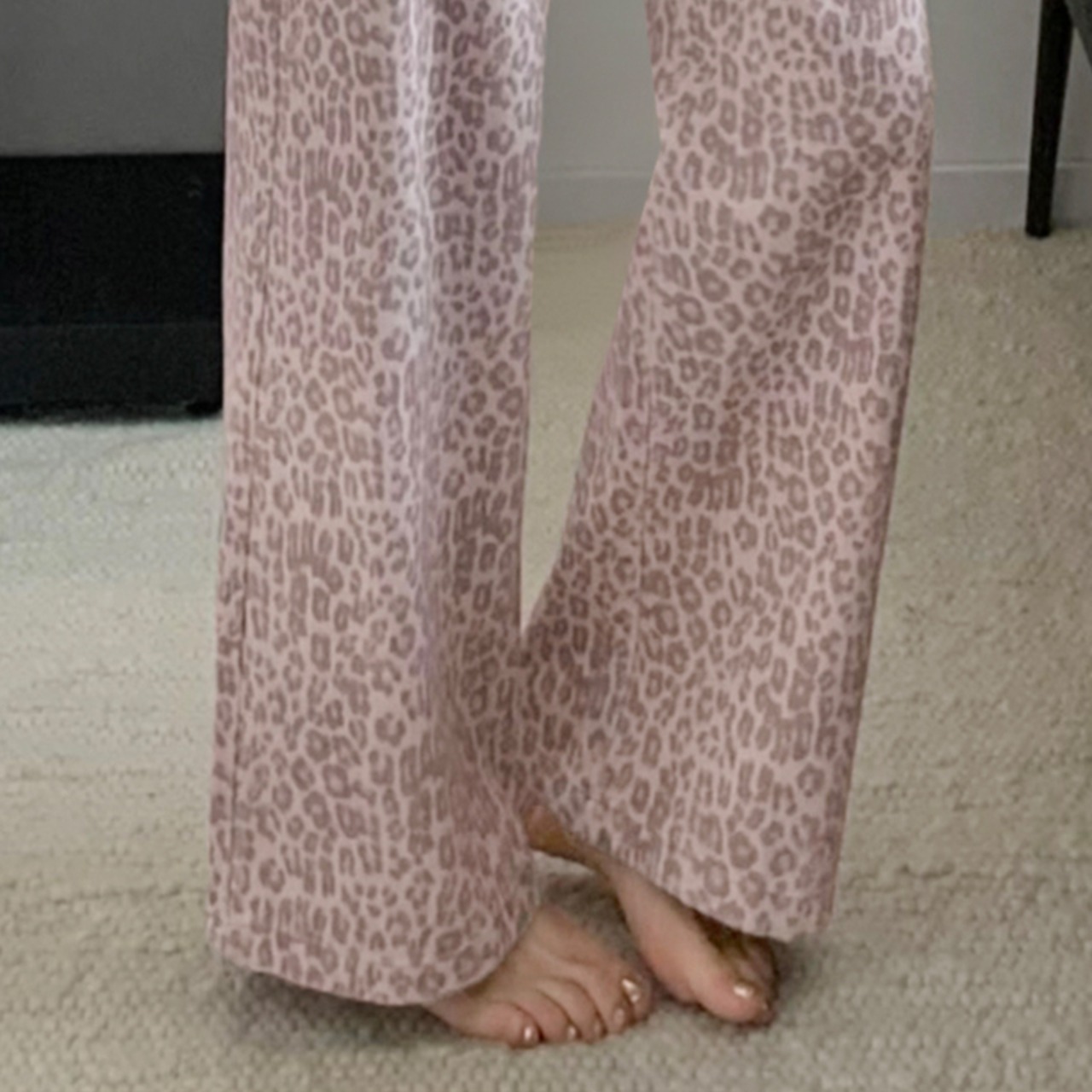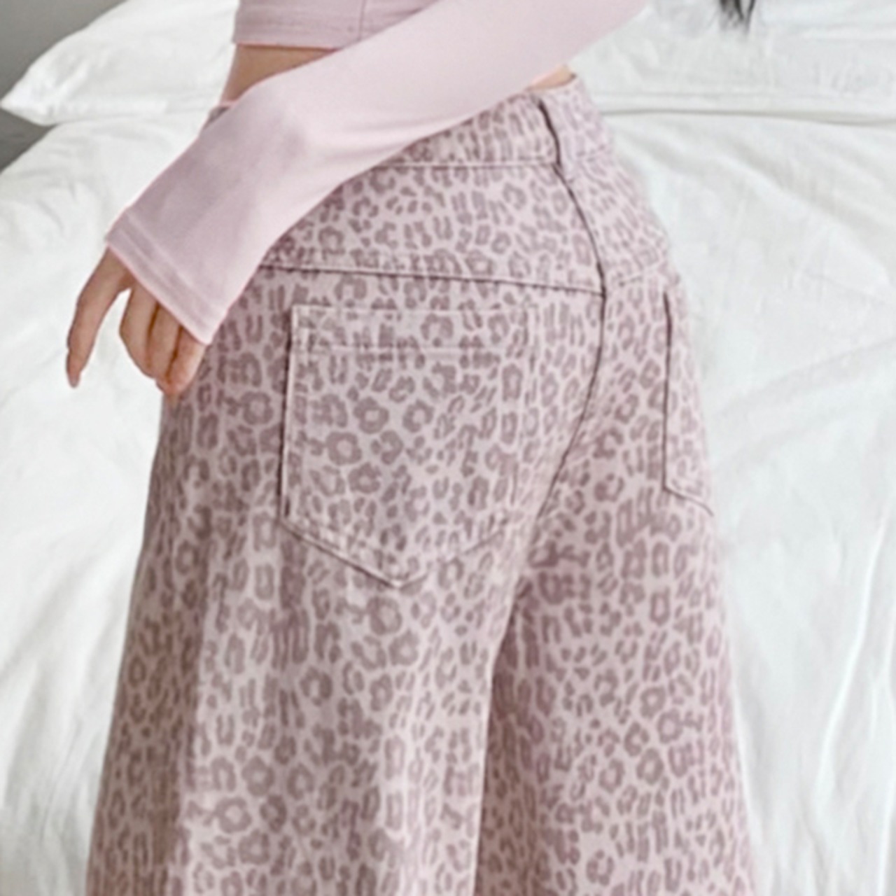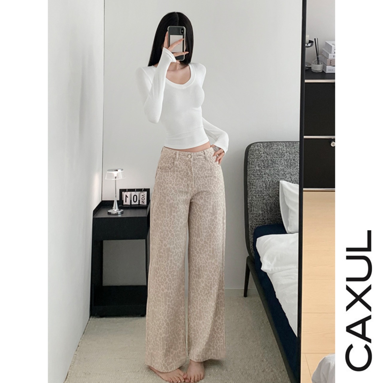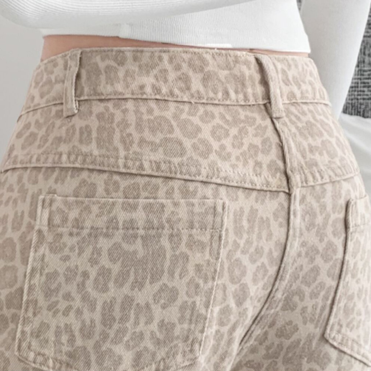 柔らかいカラートーンに溶け込むレオパード柄が、大人の上品さを引き立てるストレートデニム。派手すぎず程よいアクセントになるため、シンプルなトップスと合わせるだけで洗練された印象に。脚のラインを拾わない美しいシルエットで、デイリーに着回しやすい一本です。