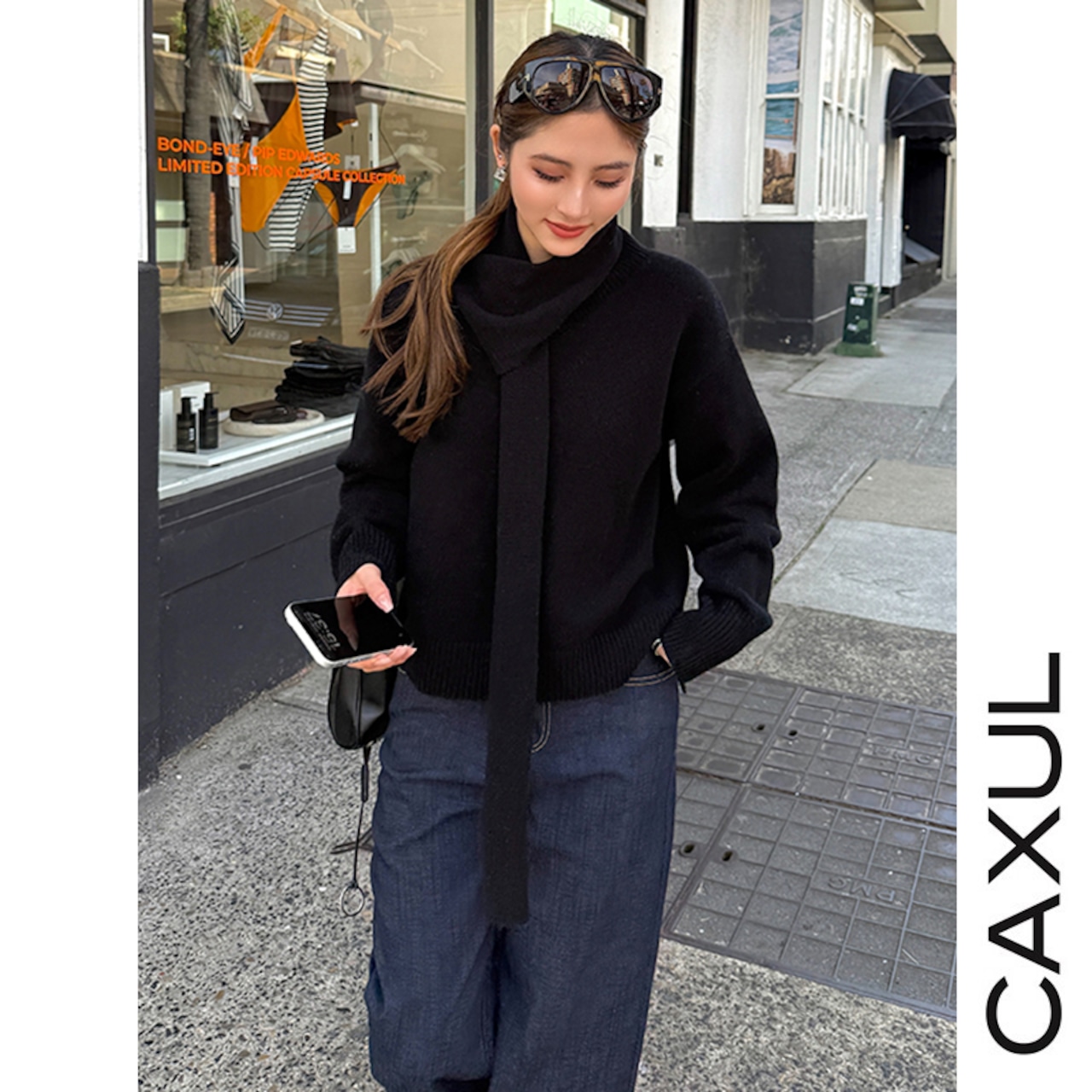 柔らかく優しい風合いが魅力のスカーフ付きウールニットトップス。絶妙な太さの26番手ウール糸を使用し、チクチクしにくく肌触りがとても柔らかいのが特徴です。ゆったりとしたシルエットがリラクシーな雰囲気を生み、肩を華奢に見せるドロップショルダーが上品でエレガントな印象を添えます。ふっくらと空気を含む編み地がぬくもりを保ちやすく、繊細で立体的な表面がふんわりとしたソフトフォーカス効果と上品な艶感を演出。程よい厚みで、秋・冬にぴったりの一枚です。