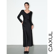程よくシェイプされたウエストと控えめなマーメイドラインが、動くたびに上品な揺れを生み、気になる部分もスマートにカバー。研ぎ澄まされたミニマルなデザインだからこそ、存在感は圧倒的。