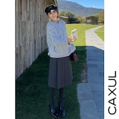 ウール混素材を使用した、ハイウエストのボックスプリーツAラインスカート。表情豊かなヘザーウールが静かなニュアンスを生み、装いに上質な奥行きを添えます。