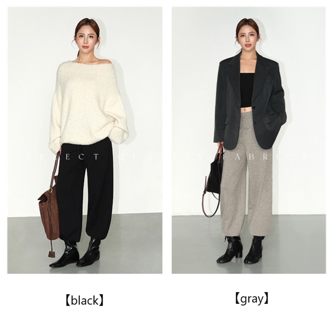 ゆったりとした落ち感が、自然体のリラックスムードを演出するニットパンツ。ハイウエスト仕様で腰位置を高く見せ、脚のラインをすっきりと整えます。ウエストはゴム×ドローストリングで快適な穿き心地に。程よい厚みとハリのある素材がシルエットを美しく保ち、暖かさと軽やかさを両立。柔らかく、もちっとした質感が心地よい、日常に溶け込む大人のための一本です。