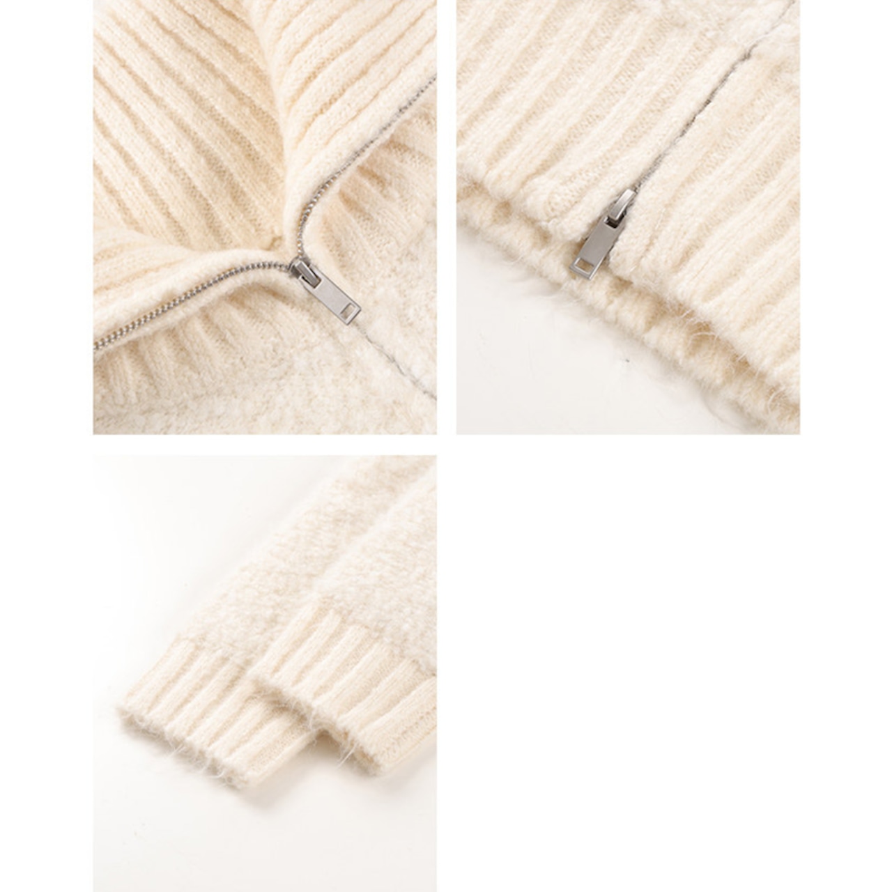 ループ状のブークレ糸を使用したジップアップブルゾン。粒感のあるニットが特徴。ふっくらとした厚みと立体感のある編み地が、シンプルながらも表情のある一着に仕上げています。襟は立てても折っても着用でき、スタイリングに合わせてアレンジ可能。程よくゆとりのあるシルエットで体型を選ばず、リラックスした着心地も魅力です。デイリーに取り入れやすく、長く愛用できるブルゾンです。