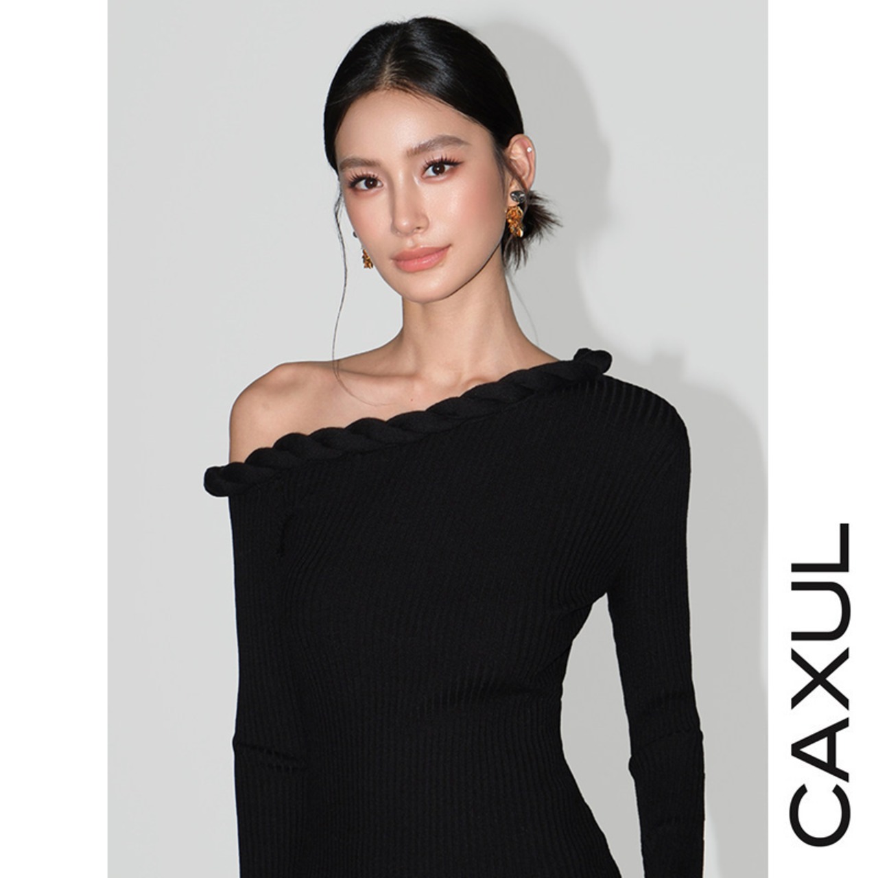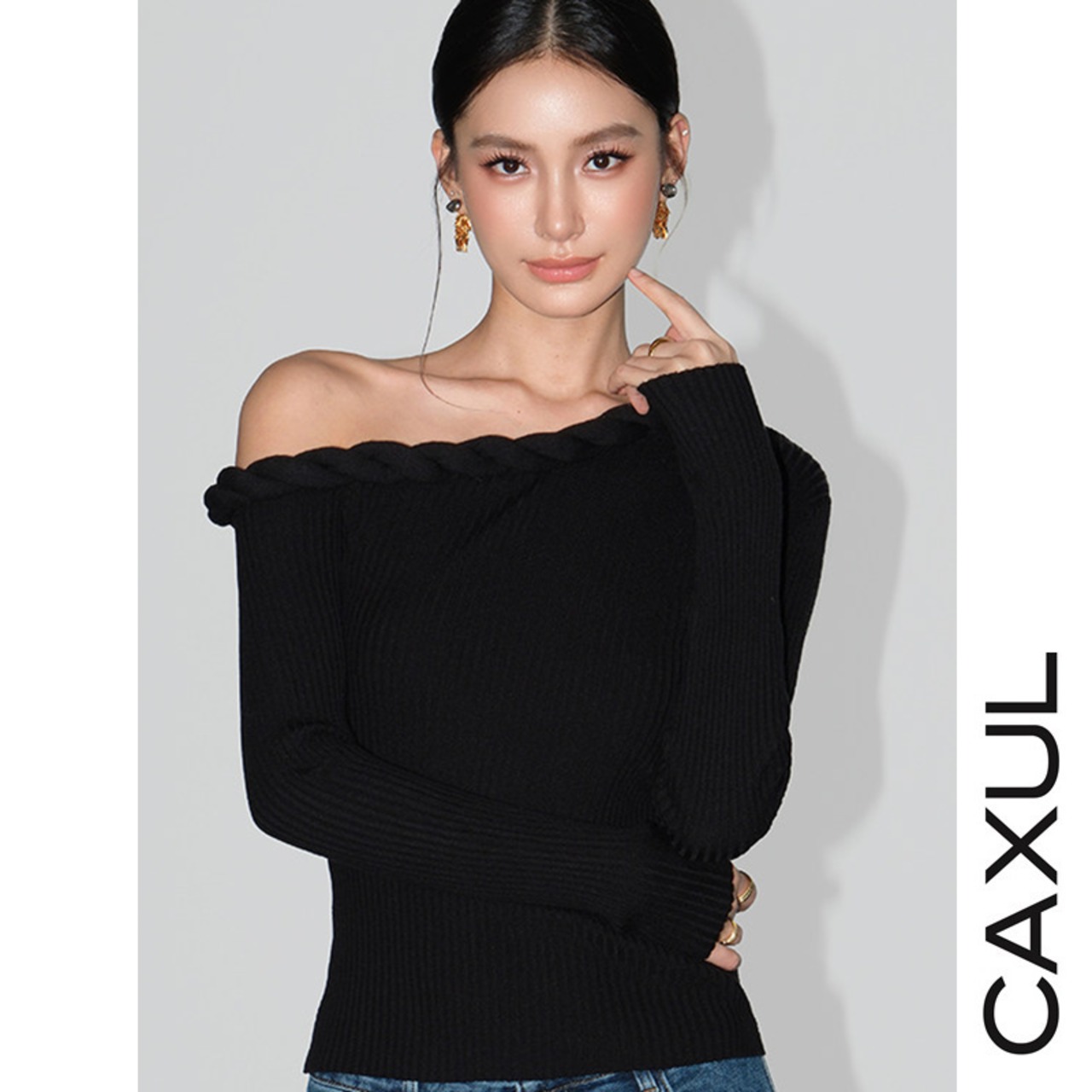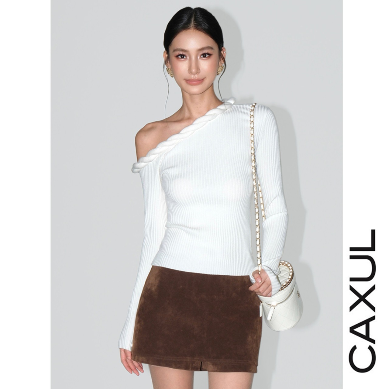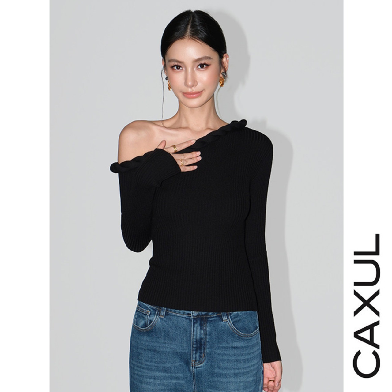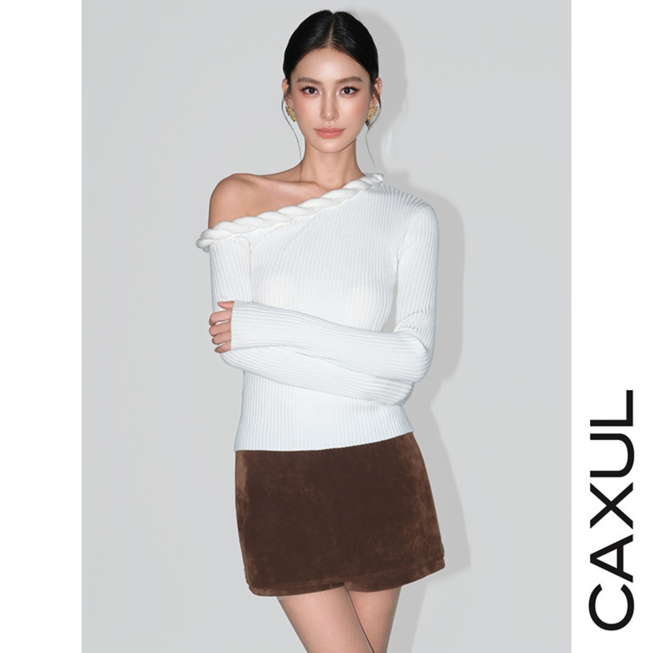肩のラインを美しく引き立てる、アシンメトリーなワンショルダーニット。控えめに覗く鎖骨が、さりげない女性らしさを添えます。首元にあしらったケーブルディテールが、シンプルな中に奥行きをプラス。ケーブル編みニットは身体に自然に沿い、無理のないシルエットに仕上げています。一枚でスタイルが決まる、洗練されたトップスです。