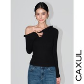 ワンショルダー ケーブルニットトップス/2color