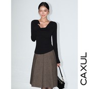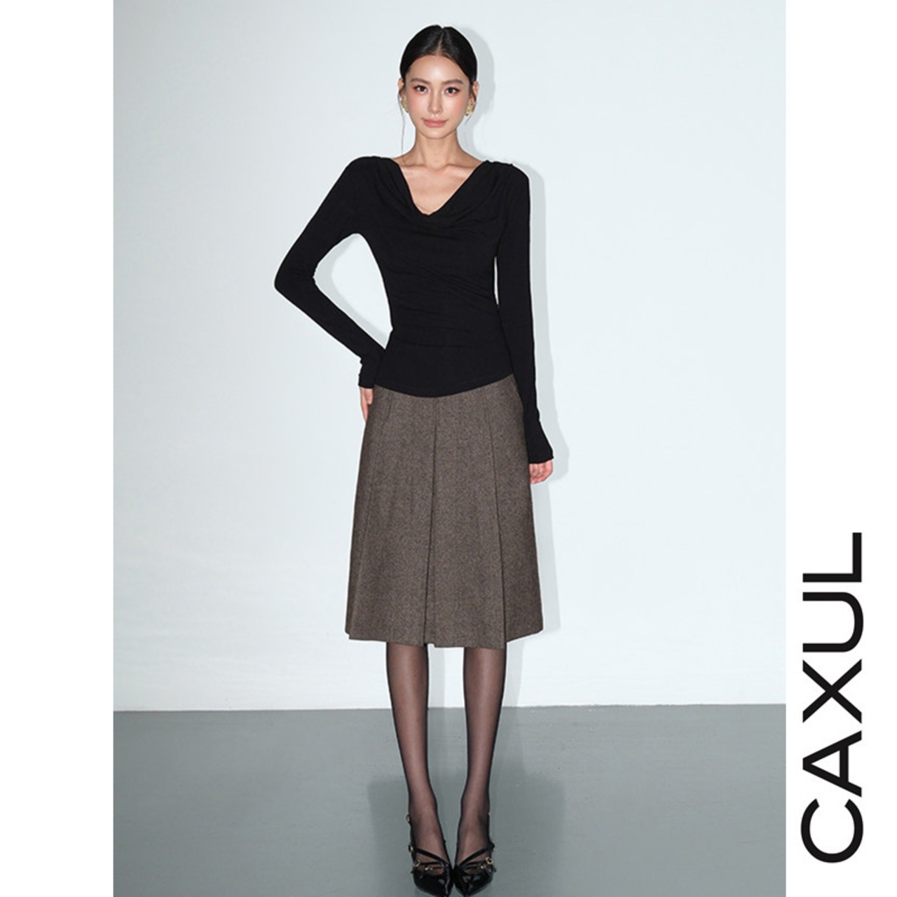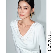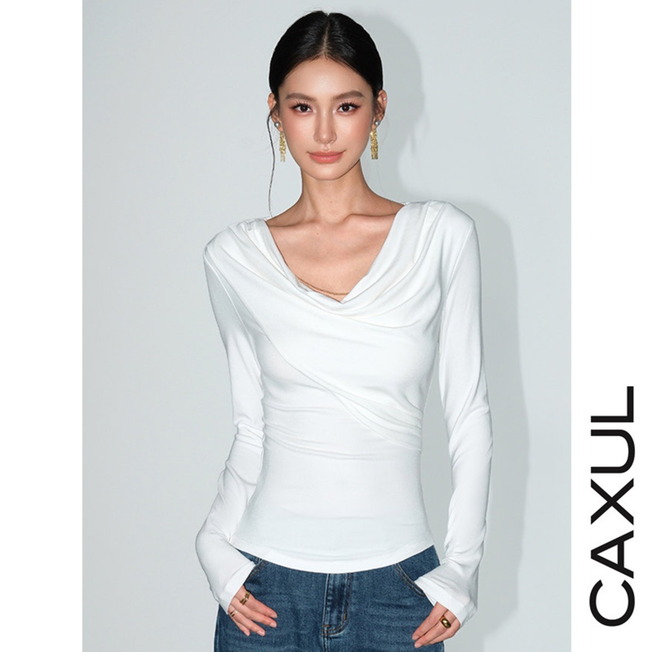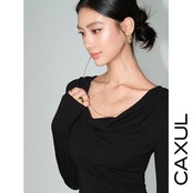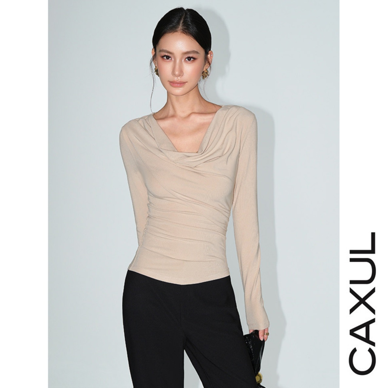 美しいドレープネックがデコルテのラインを引き立てるトップス。ネックラインにあしらわれたチェーンがアクセントとなり、さりげない華やかさをプラスします。サイドウエストにはプリーツを施し、自然にラインを整えながら腰まわりをすっきり見せてくれるデザイン。程よく身体に沿うスリムフィットで、きつさや張り付き感のない快適な着心地も魅力です。ストレッチレーション素材でこれから春まで着られる1着です。