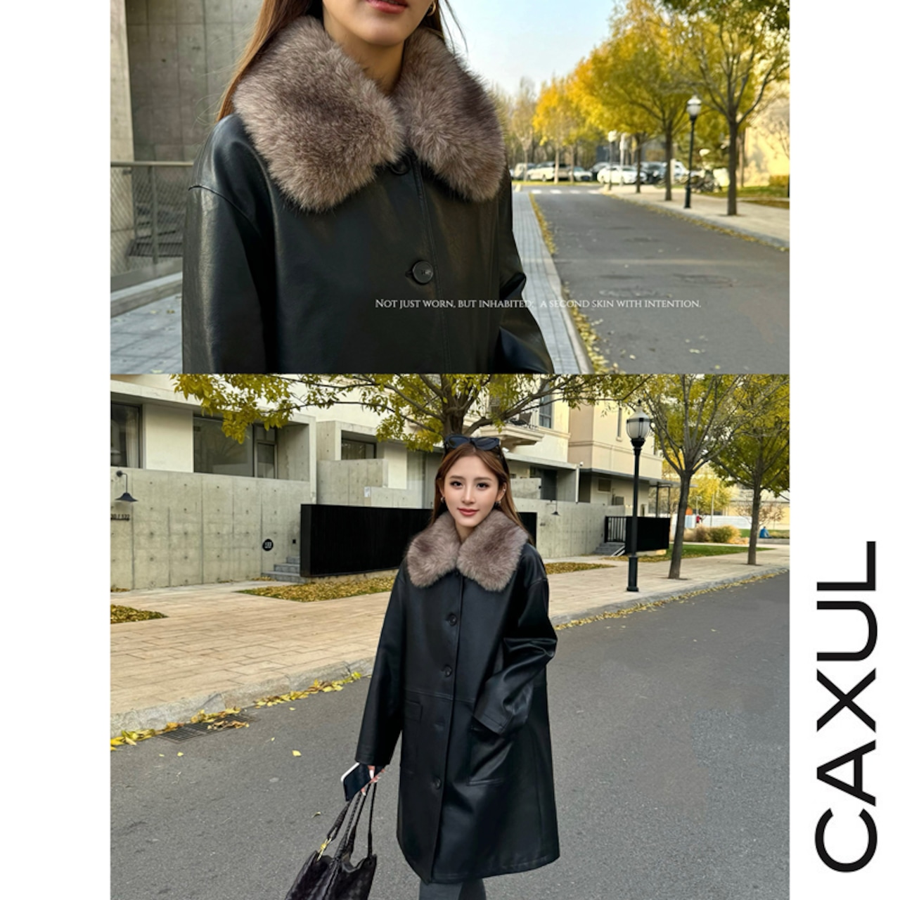 無駄を削ぎ落としたストレートなHラインが美しい、PUレザーコート。ほどよくゆとりを持たせたシルエットは体型を自然に包み込み、洗練された印象を保ちます。襟元には取り外し可能なフェイクファーカラーを配し、軽やかなラグジュアリー感と確かな保温性をプラス。ドロップショルダーが生む柔らかな抜け感と、クラシックなシングルブレストが調和し、春まで幅広いシーンに対応する一着です。