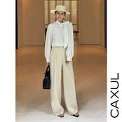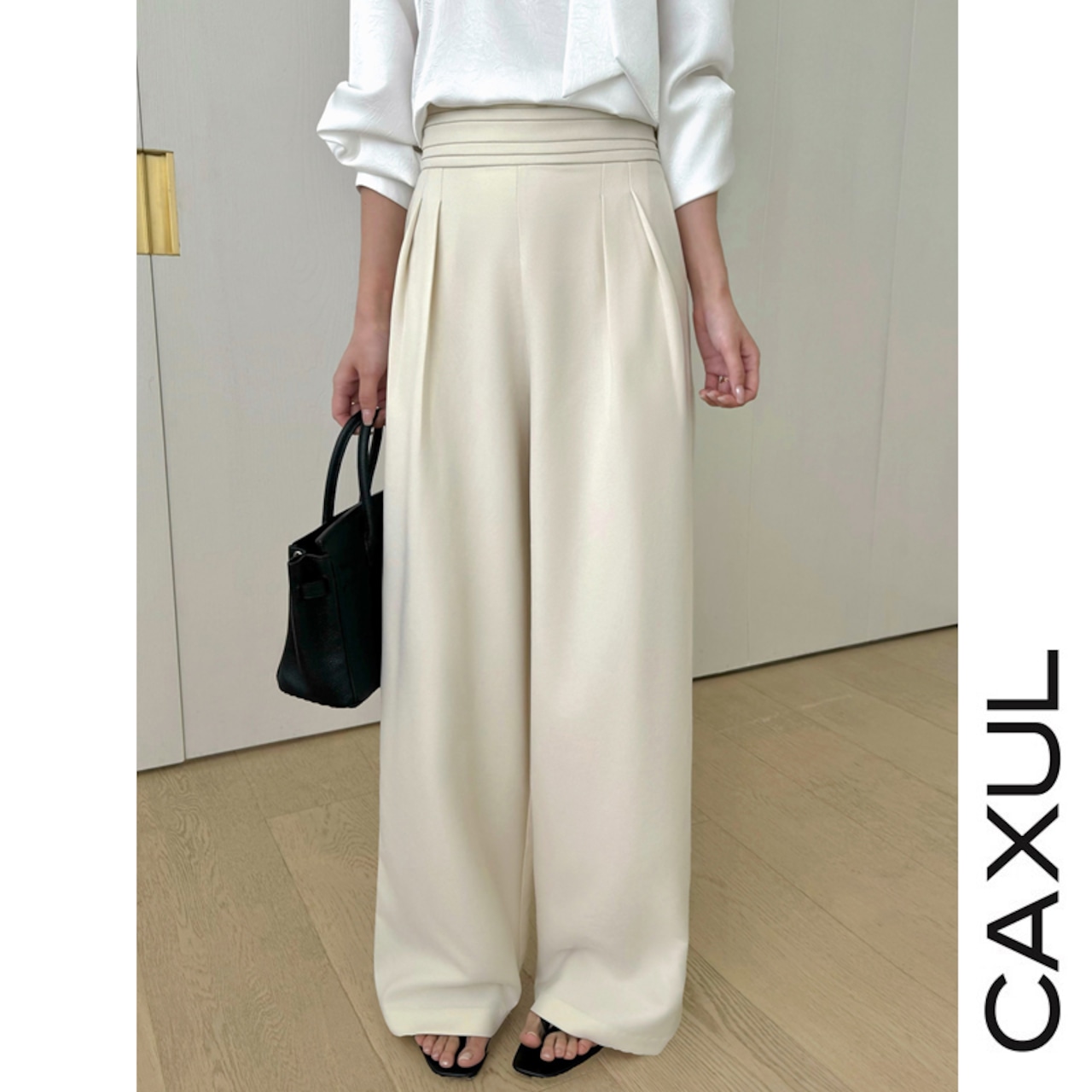 落ち感の美しいワイドシルエットが、凛とした佇まいをつくる一本。ウエストに施した繊細なプリーツがウエスト回りを自然なシルエットに整え、さりげない立体感を添えます。無駄を削ぎ落としたミニマルなデザインに、流れるようなドレープが静かな存在感を演出。サイドの隠しファスナーがすっきりとした印象を保ち、バックダーツが腰まわりに穏やかにフィット。気負わず纏えて、上質さが滲む大人のためのワイドパンツです。