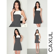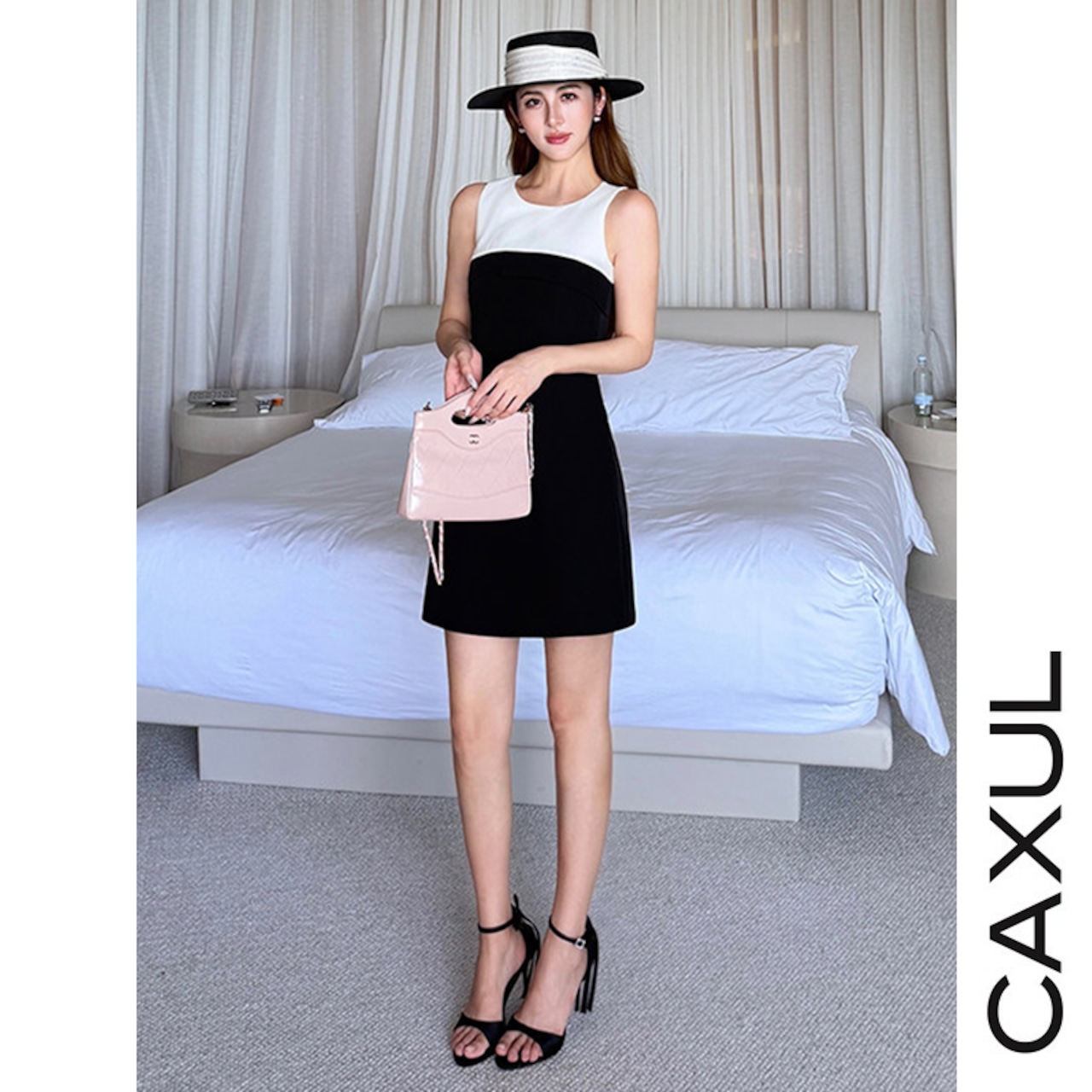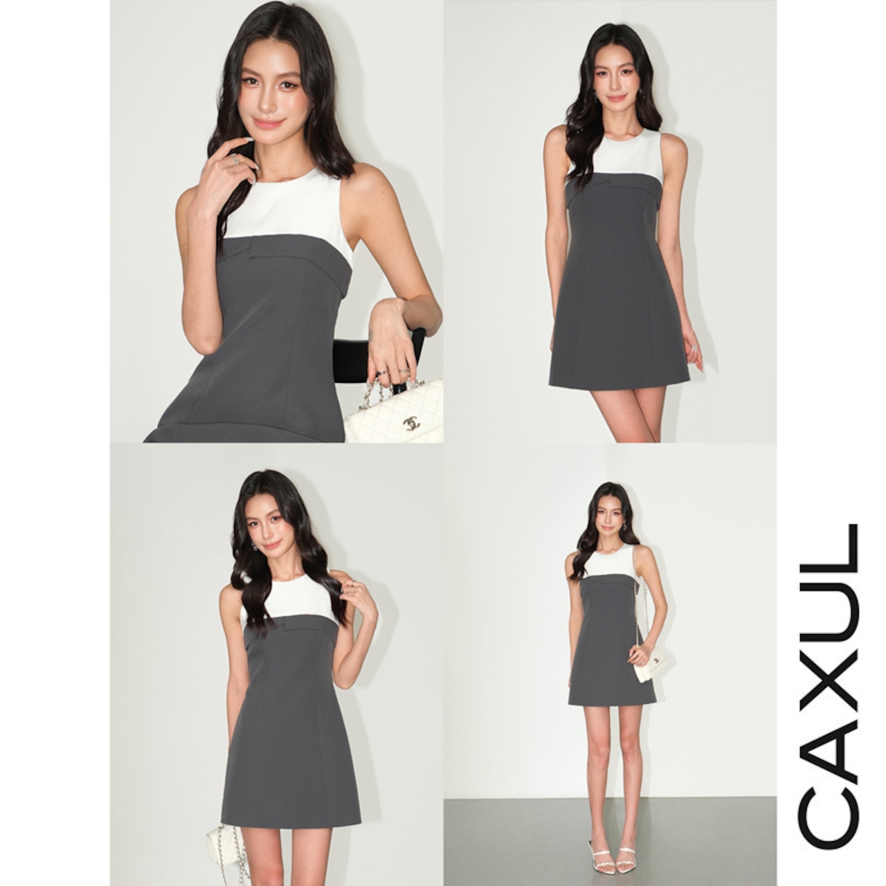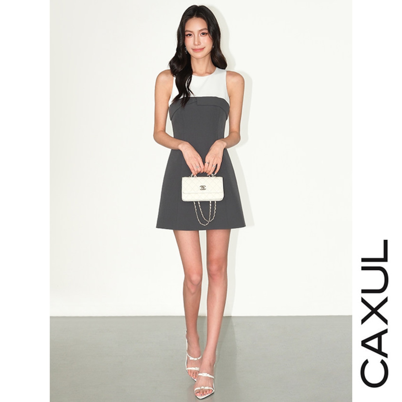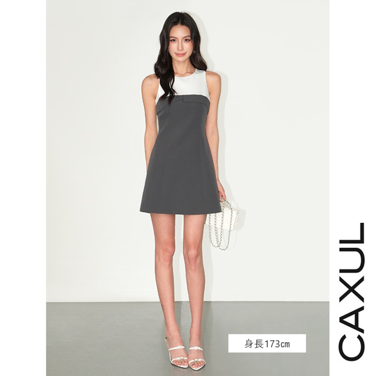 バイカラーデザインが目を惹く、ノースリーブミニワンピース。ウエストに程よく沿うシルエットで自然なくびれを演出し、スタイルアップを叶えます。立体的なカッティングとパネル切替が美しいラインを描き、すっきりとした印象に。裏地付きで透け感を抑え、快適な着心地に。1枚で洗練されたスタイリングが完成する一着です。