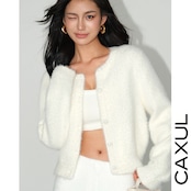 シャギーショートカーディガン。ビロードの様なフェイクミンクウールの柔らかく、肌触りが良いカーディガンです。シンプルなニットカーディガンながらも、しっかりとした毛感で温かさとリラックスさを感じます。クラシックなラウンドネックが首元を軽く、鎖骨を美しく魅せてくれます。ドロップショルダーのデザインで、肩のラインを柔らかくし、肩や背中の厚みを軽減。リラクシーなシルエットが視覚的にスリムに見せてくれます。