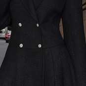 ウエストを絞った上半身とプリーツスカートが織りなすXラインシルエットが美しく、Vネックが首元をすっきり見せます。