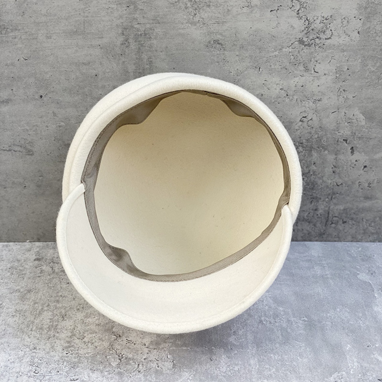 柔らかなフェルト素材で仕立てたキャスケット。しっかりと形が保たれる立体フォルムが、顔まわりに上品な陰影をつくります。さりげないモード感を添え、カジュアルにもきれいめにも馴染む万能なデイリーアイテムです。