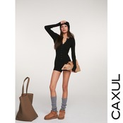 リブ編みショートジャンプスーツ。リブ編み素材でボディにぴったりフィットするデザインが特徴。フロントに並んだボタンがアクセントとなり、シンプルながらもスタイリッシュな印象を与えます。個性的なデザインのジャンプスーツで差のつく1着です。